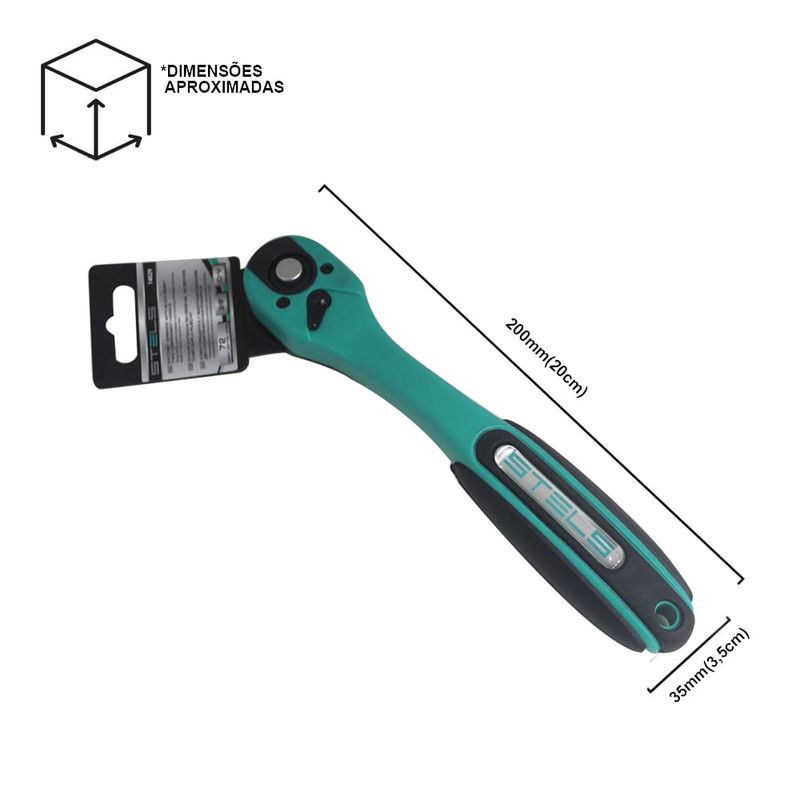 Catraca Reversível Com Cabo De Dupla Injeção Encaixe 3/8 - 72 Dentes - 14029 - Stels