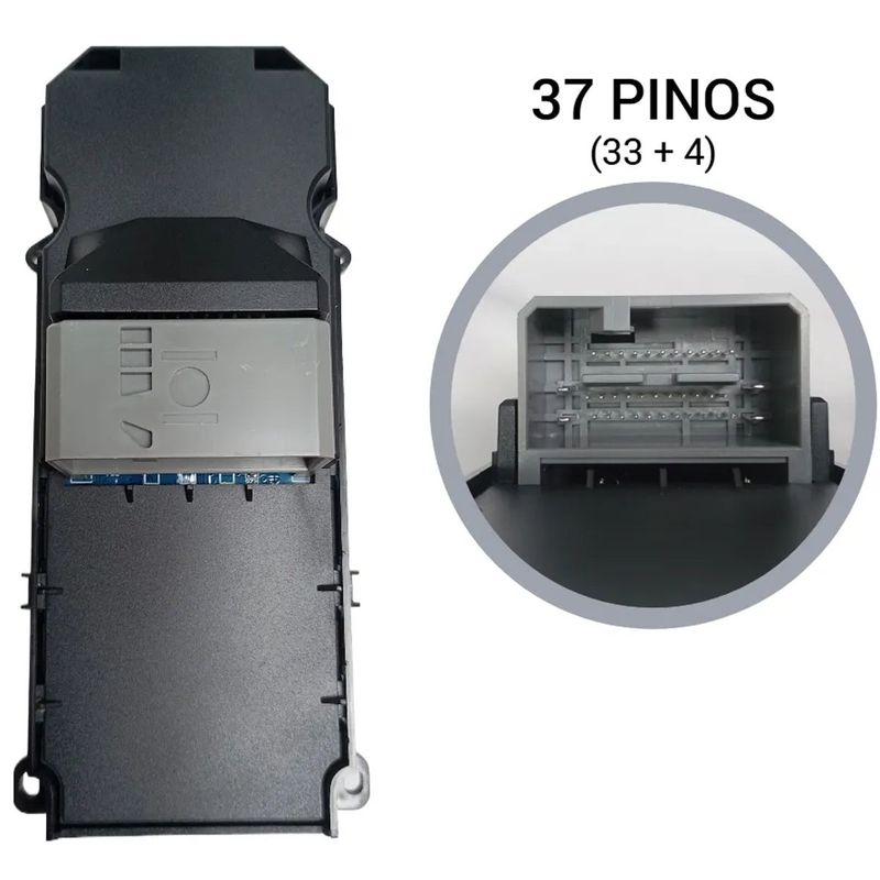 Descrição da peça: O comando do botão do vidro elétrico dianteiro lado esquerdo (motorista) é responsável pelo acionamento dos vidros do veículo. Este modelo possui a função Auto nas 4 teclas e conta com conector de 37 pinos (conforme Foto 2), assegurando encaixe perfeito e funcionamento compatível com a versão original.