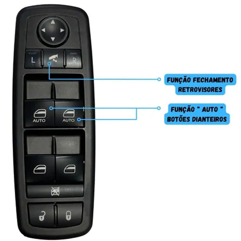 Comando Botão Vidro Elétrico com Rebatimento