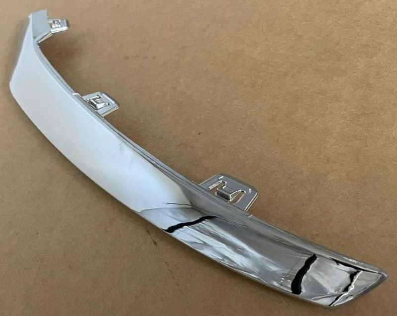 Friso cromado do para-choque dianteiro, lado esquerdo (motorista), fabricado com excelente acabamento, alinhamento preciso e qualidade equivalente ao modelo original.