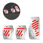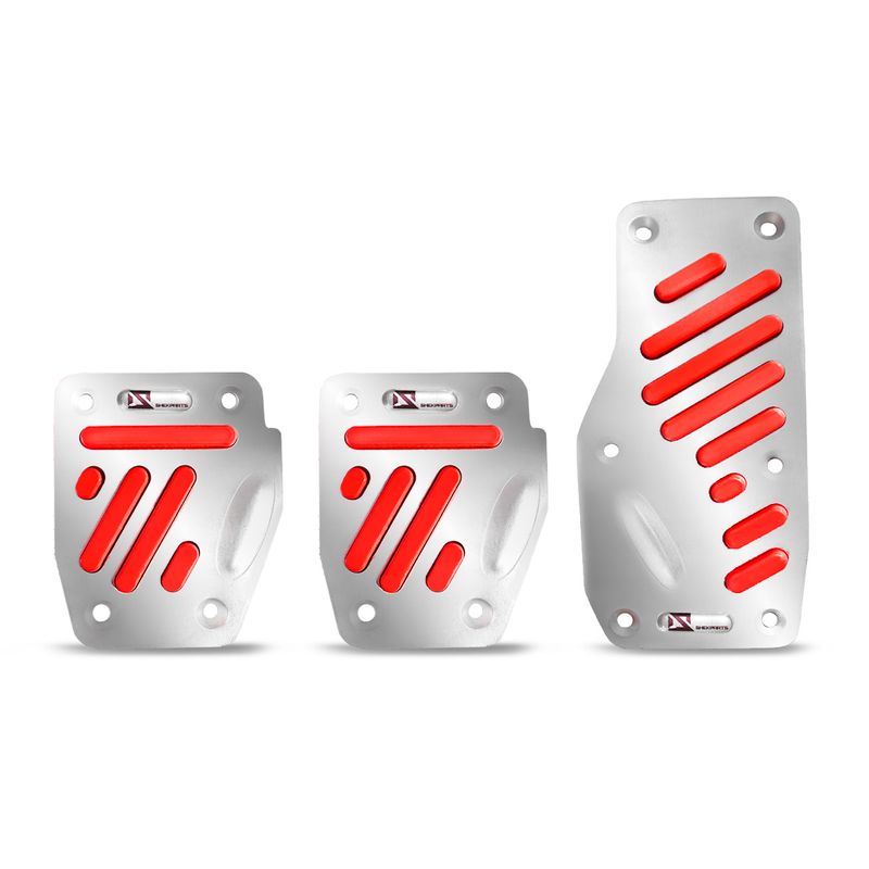 Fabricado pela Shekparts, o kit é composto por capas de pedais de freio, embreagem e acelerador, fabricados em Alumínio Cromado, com material antiderrapante na cor Vermelha dando mais beleza a peça além de facilitar as manobras dos pedais, garantindo a sua segurança ao dirigir.