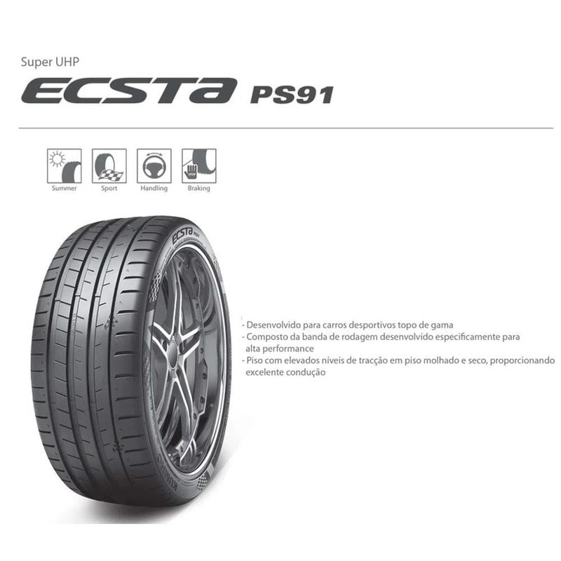 A Kumho Tire é uma empresa sul coreana de pneus de alto desempenho que oferece tecnologia inovadora e de qualidade aos consumidores em todo o mundo. Com mais de 60 anos de experiência e 8 fábricas ao redor do mundo, a Kumho dedica-se a garantir segurança e desempenho aos seus consumidores em todo o mundo. O ECSTA PS91 foi desenvolvido para os supercarros e veículos de melhor desempenho na pista. Utilizando a extensa experiência da Kumho em automobilismo, esse pneu de design inovador proporciona melhores condições de segurança e dirigibilidade em curvas. Com toda essa tecnologia e desempenho, vai ficar difícil não pegar a estrada.