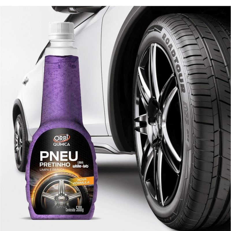 Orbi Pneu Pretinho Gel foi especialmente formulado para cuidar e preservar os pneus e emborrachados em geral. Sua formulação é isenta de glicoses, ou outros açucares, silicones e corantes, tornando-o mais eficiente e de maior rendimento, deixa uma camada protetora na superfície por mais tempo que os outros produtos. Proporciona um brilho espetacular e realça rodas, para-choques, laterais de portas, retrovisores, tapetes e borrachas em geral.